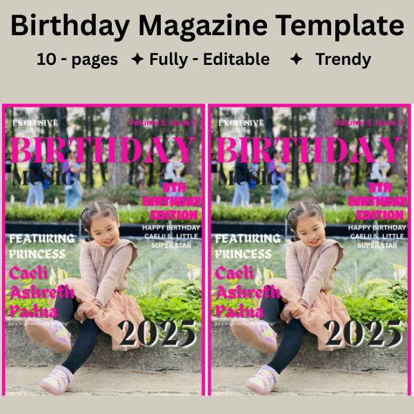 BIRTHDAY MAGAZINE TEMPLATE - Fully Editable Canva editable PDF template for birthdays. Fully customizable.